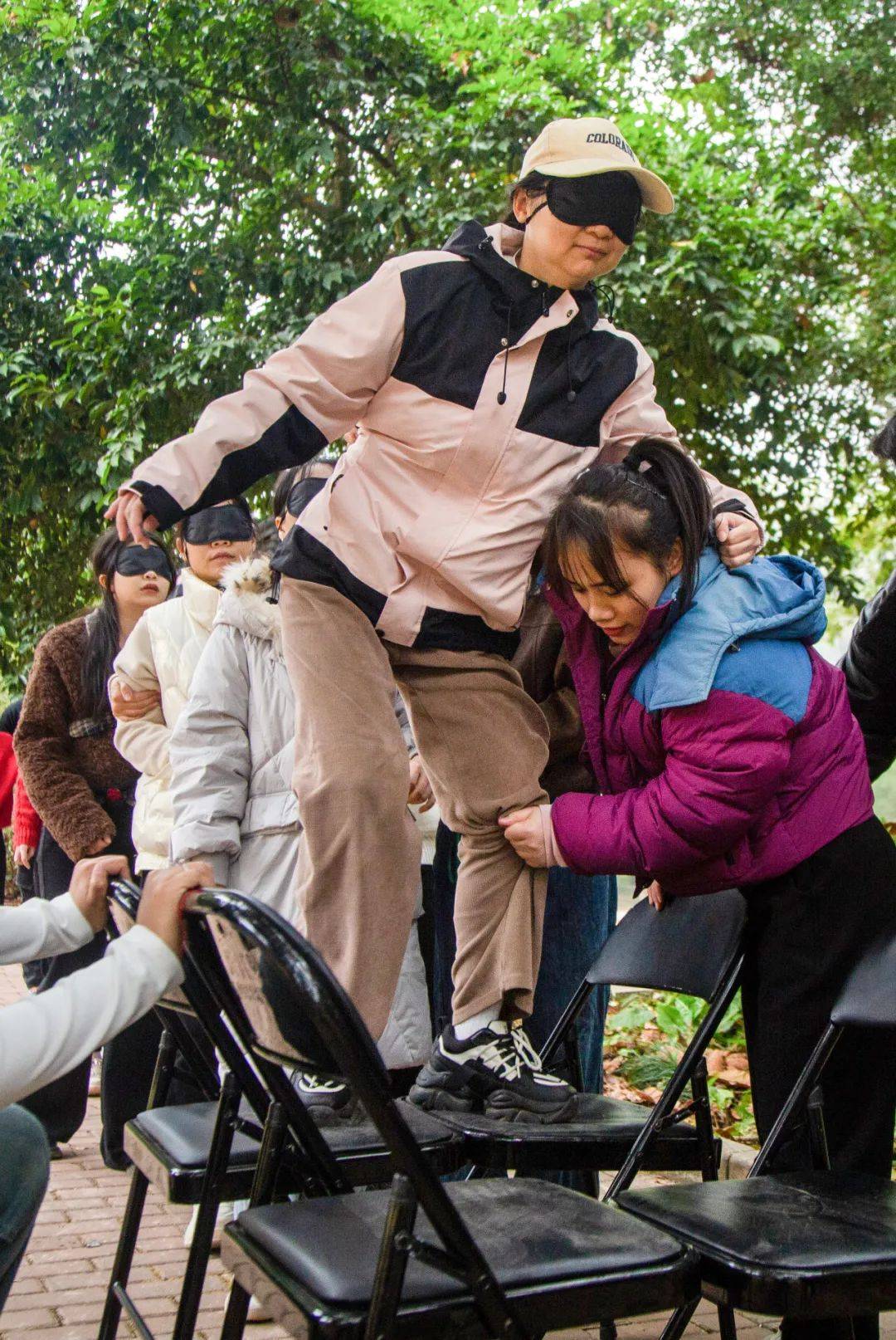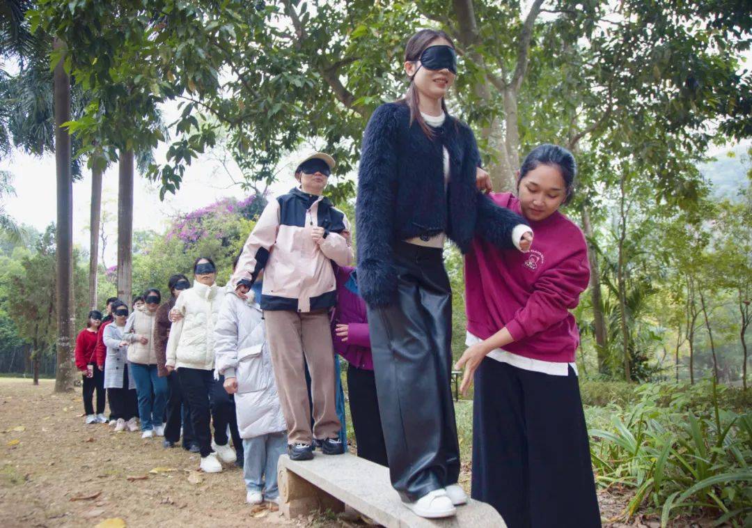 而將活動(dòng)推向高潮的,無疑是“風(fēng)雨人生路”這一特別環(huán)節(jié)。隨機(jī)配對(duì)的員工,一人蒙眼扮演“盲人”,一人禁聲扮演“引路人”,攜手并肩穿越精心設(shè)計(jì)的模擬“風(fēng)雨人生旅程”。