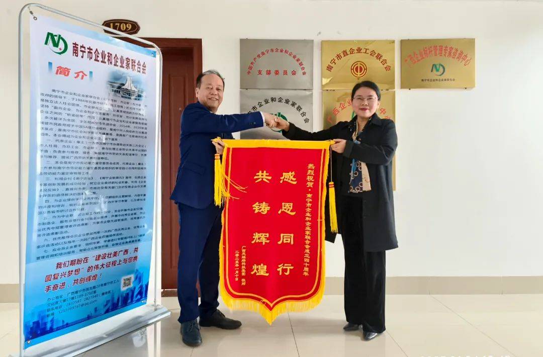 會(huì)后,郭陽(yáng)總裁代表天緣綠集團(tuán)向市企聯(lián)敬贈(zèng)了一面寫有“感恩同行·共鑄輝煌 熱烈祝賀南寧市企業(yè)和企業(yè)家聯(lián)合會(huì)成立四十周年”的錦旗,以此表達(dá)對(duì)市企聯(lián)長(zhǎng)期以來(lái)支持與幫助的深深感激。天緣綠集團(tuán)作為市企聯(lián)的副會(huì)長(zhǎng)單位,一直秉持著“誠(chéng)信、共贏、感恩、付出、堅(jiān)持”的企業(yè)理念,與市企聯(lián)攜手共進(jìn),共同推動(dòng)健康產(chǎn)業(yè)的繁榮發(fā)展。