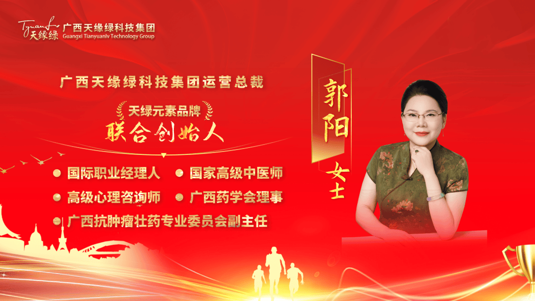 郭陽女士,作為天綠元素品牌聯合創(chuàng)始人,不僅肩負著引領品牌發(fā)展的重任,同時在大健康領域深耕細作,擔任著廣西藥學會理事、廣西膏方專業(yè)委員會委員以及廣西抗腫瘤壯藥專業(yè)委員會副主任等多個重要職務。此外,她還擁有國際職業(yè)經理人、高級心理咨詢師與國家高級中醫(yī)師的權威資質。郭陽女士的每一步都堅實而輝煌,不僅要推動天綠元素惠及更多人,更要引領團隊實現“健康他人,成就自己”的企業(yè)愿景,讓每個人都能在天緣綠實現自我價值,共同書寫健康事業(yè)的新篇章。