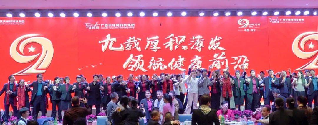 2025年1月13日,南寧沃笙五星級(jí)酒店內(nèi),璀璨的宴會(huì)廳見證了“九載厚積薄發(fā)·領(lǐng)航健康前沿”天緣綠集團(tuán)九周年慶典的盛大舉行。集團(tuán)領(lǐng)導(dǎo)、嘉賓、員工以及來自全國(guó)各地的經(jīng)銷商伙伴等近千人歡聚一堂,共享這場(chǎng)年度盛宴。