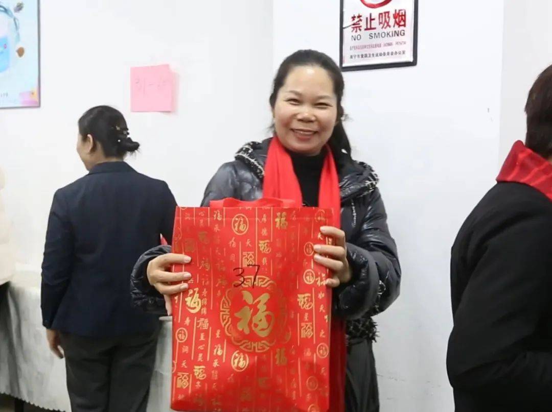 “抽到72號(hào)的同事,請(qǐng)到左手長(zhǎng)桌領(lǐng)這份‘盲盒’!”隨著主持人一聲吆喝,南寧姑娘抽中了橫縣同事準(zhǔn)備的包裹。揭開保鮮袋,是一個(gè)鐵托盤盛放的年糕和一袋手工腌制的醬蘿卜,袋里附著的紙條上歪歪扭扭寫著:“年糕是早起時(shí)剛蒸好的,醬蘿卜也是自個(gè)做的,祝年年高升?!”