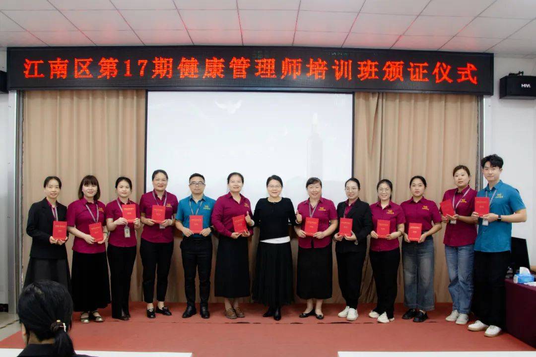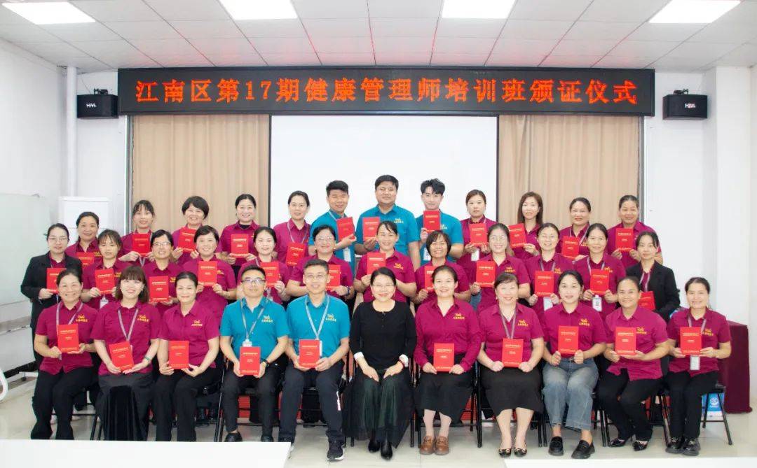 3月3日,江南區(qū)第17期健康管理師培訓(xùn)班頒證儀式在天綠元素生活體驗中心溫馨舉行。42名學(xué)員參加考試,40人成功取得國家高級健康管理師證書,通過率高達95%。這場儀式不僅是對學(xué)員們努力的肯定,更是天緣綠集團在人才培養(yǎng)和踐行社會責任上的又一次見證。